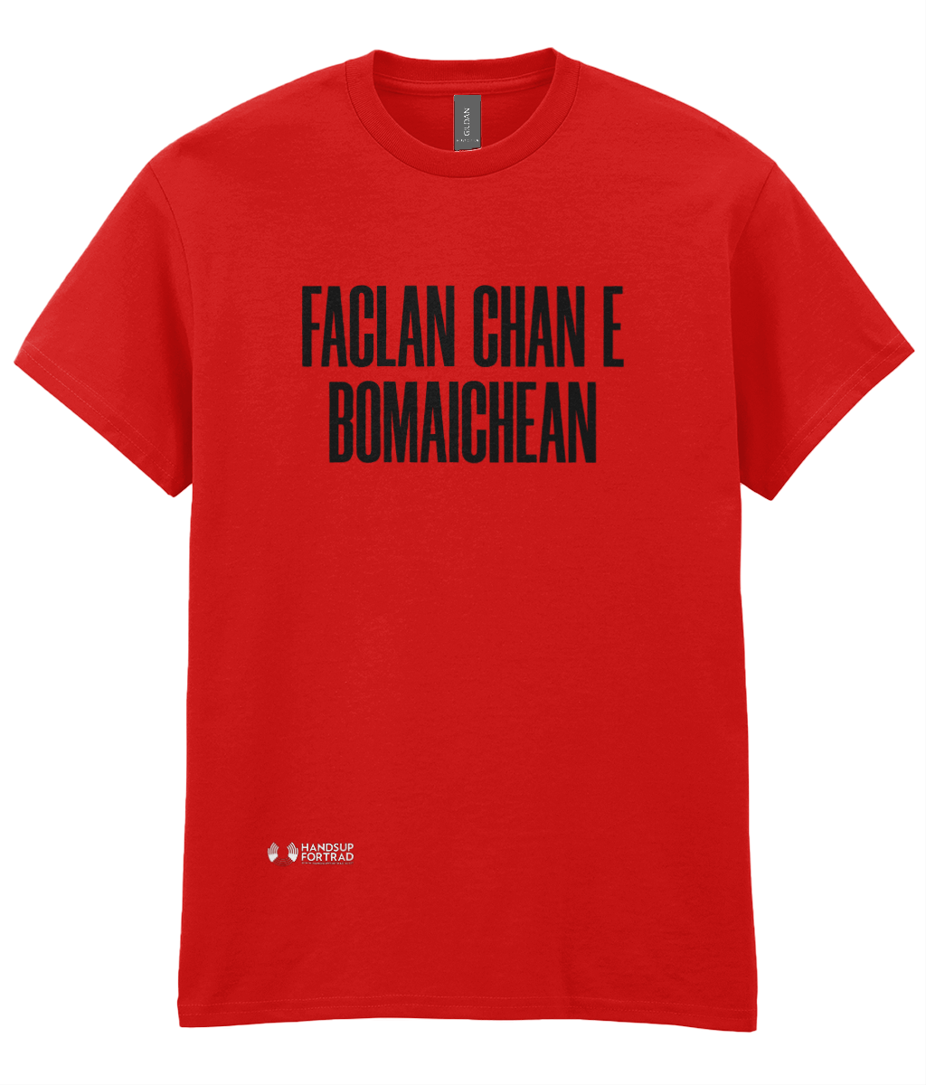 Faclan Chan e Bomaichean (Words Not Bombs) is a traditional cry for peace which is sorely needed at the moment. The income from these t-shirts go to support the work of Hands Up for Trad so thank you. T-shirts will be sent out in 5 days.