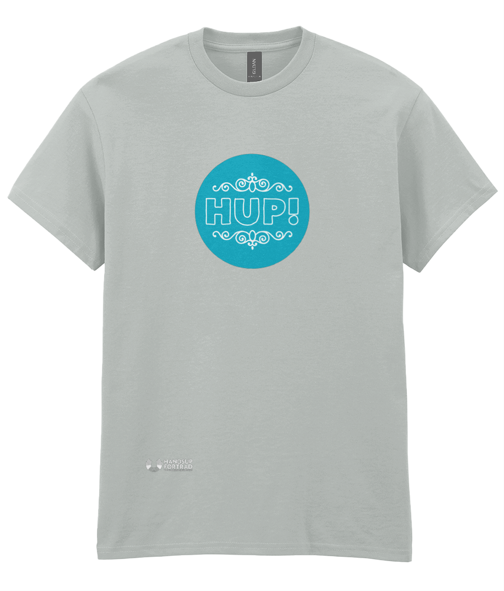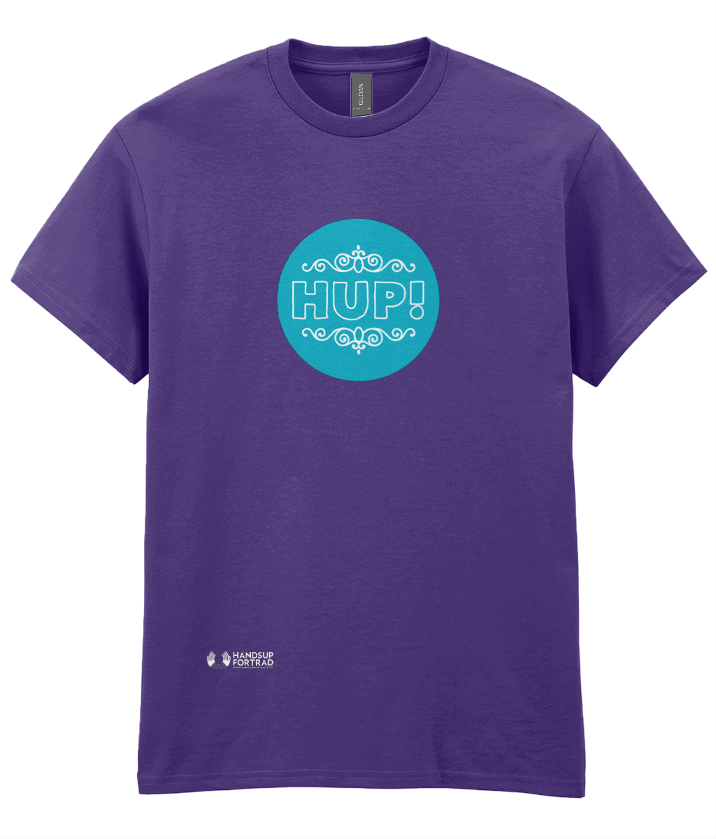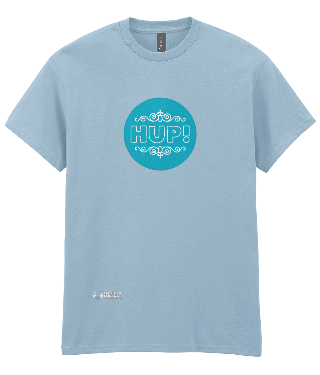 Hup! is an expression for the dance tunes that we shout when we are having a good time! Thanks for buying this t-shirt. All proceeds go to support the work of Hands Up for Trad.