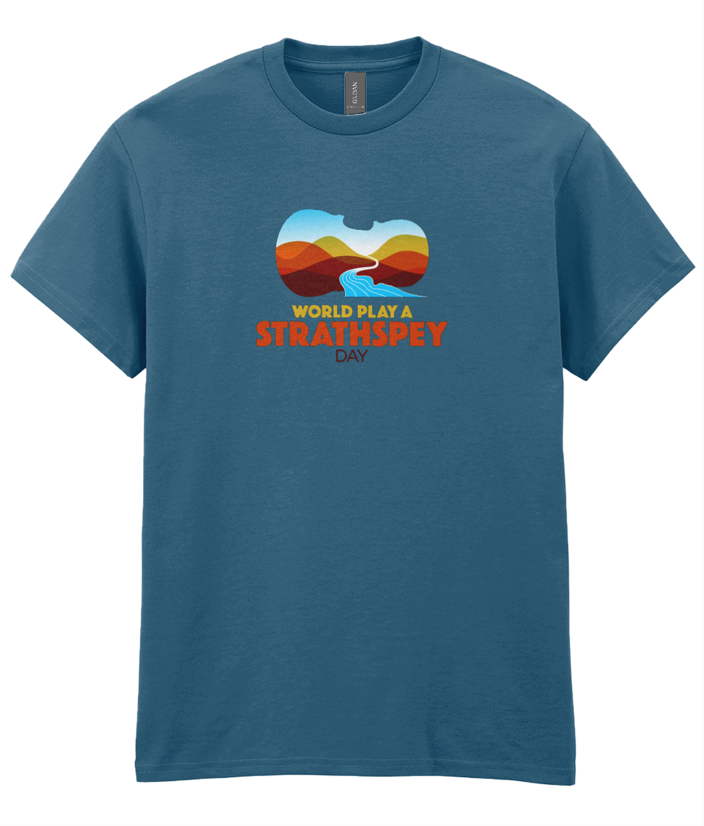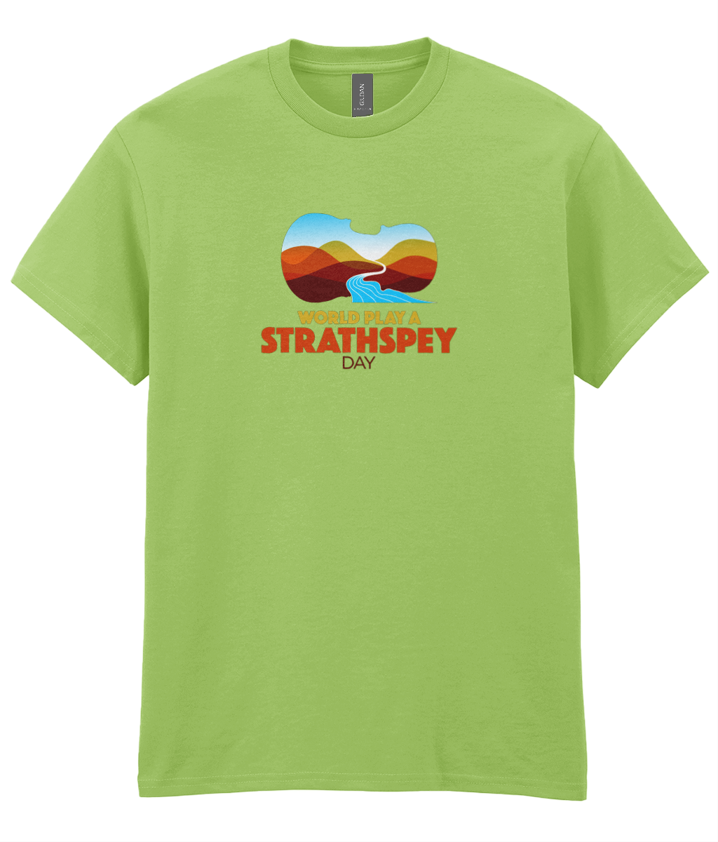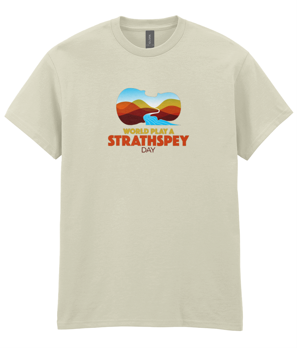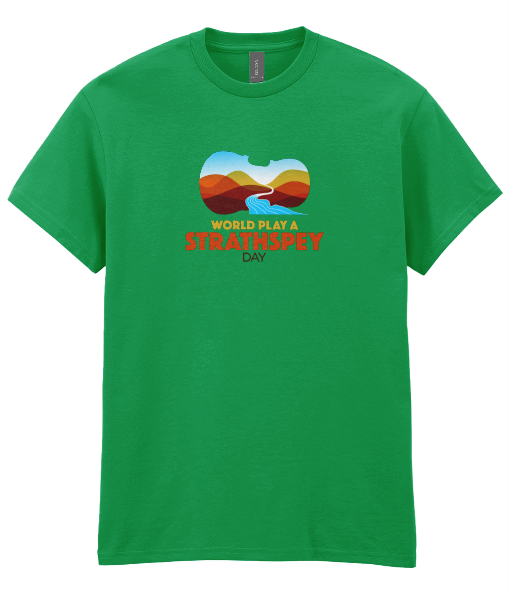 Celebrate World Play A Strathspey Day and play a strathspey! All profits from the sale of this t-shirt support the work of Hands Up for Trad. Thankyou! T-shirts will be posted within 5 days.