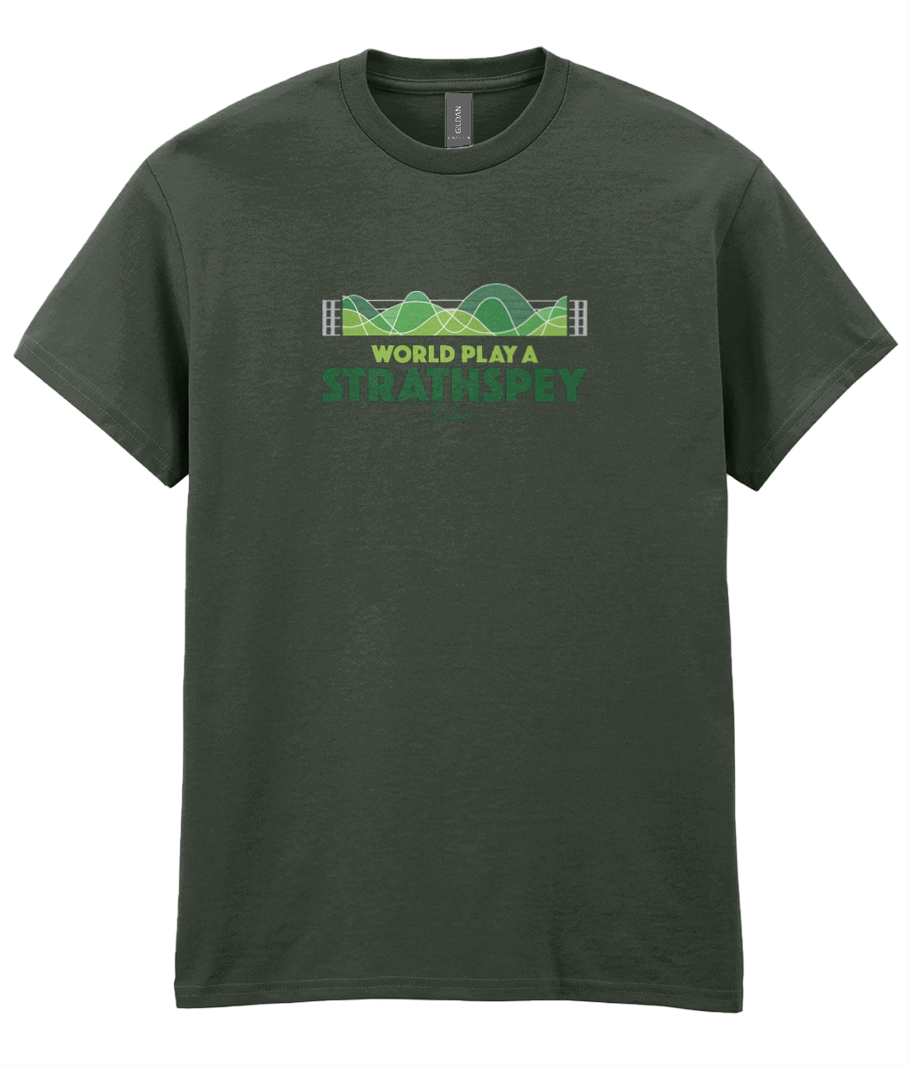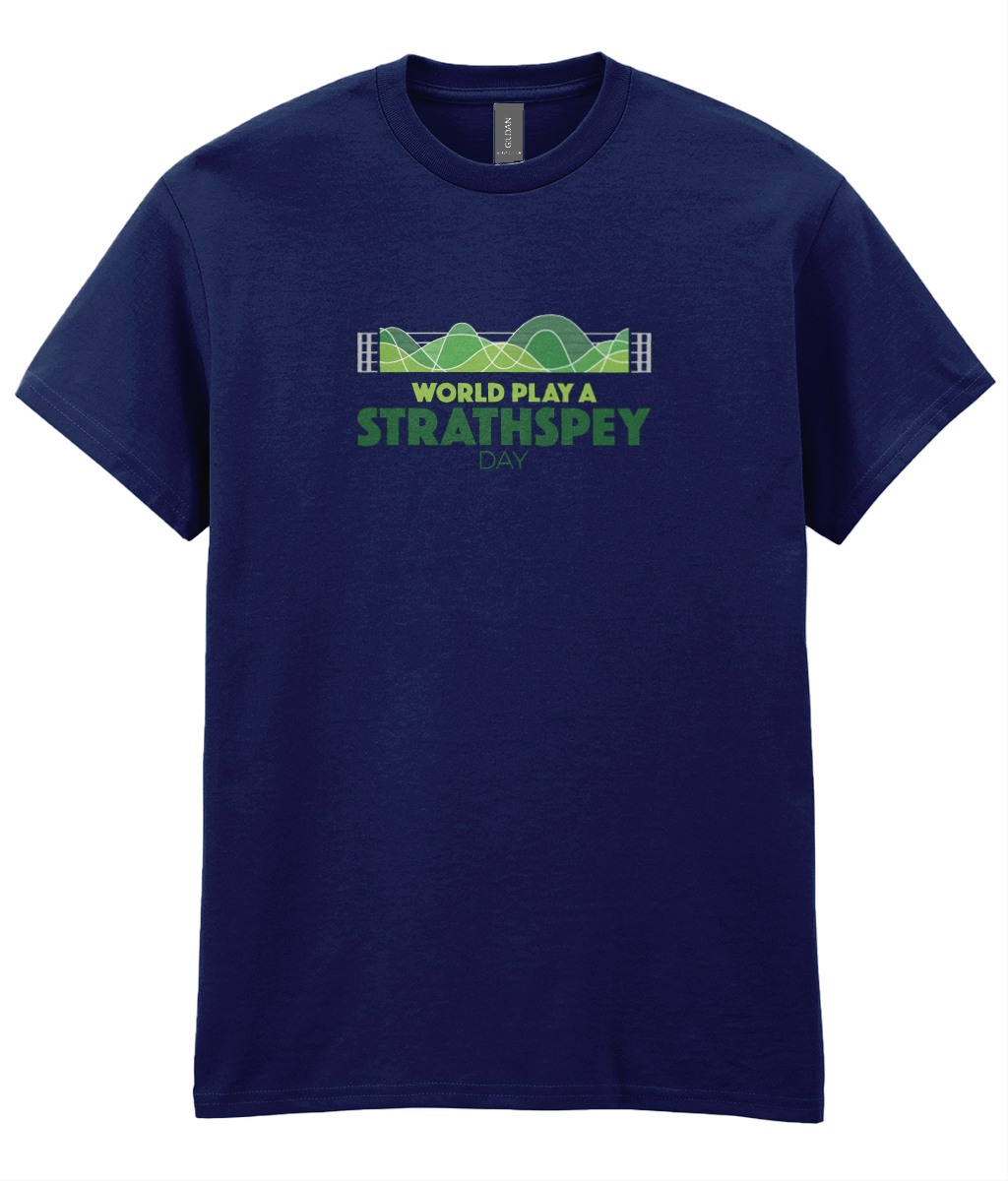 Celebrate World Play A Strathspey Day and play a strathspey! All profits from the sale of this t-shirt support the work of Hands Up for Trad. Thankyou! T-shirts will be posted within 5 days.